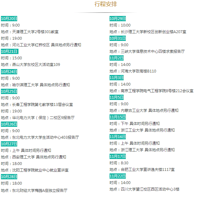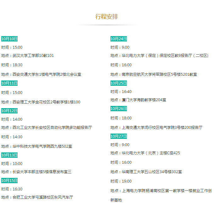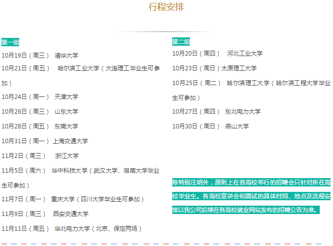 招聘需求:①985院校、華北電力大學(xué)、原電力部屬老六校電工類(lèi)專(zhuān)業(yè)本科生、研究生;②一般院校電工類(lèi)專(zhuān)業(yè)研究生。行程之外但滿足招聘對(duì)象要求的畢業(yè)生可就近參加。