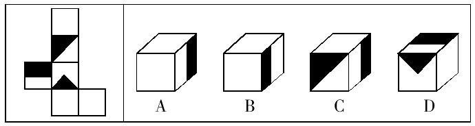 3、左邊給定的是紙盒的外表面,右邊哪一項(xiàng)能由它折疊而成?