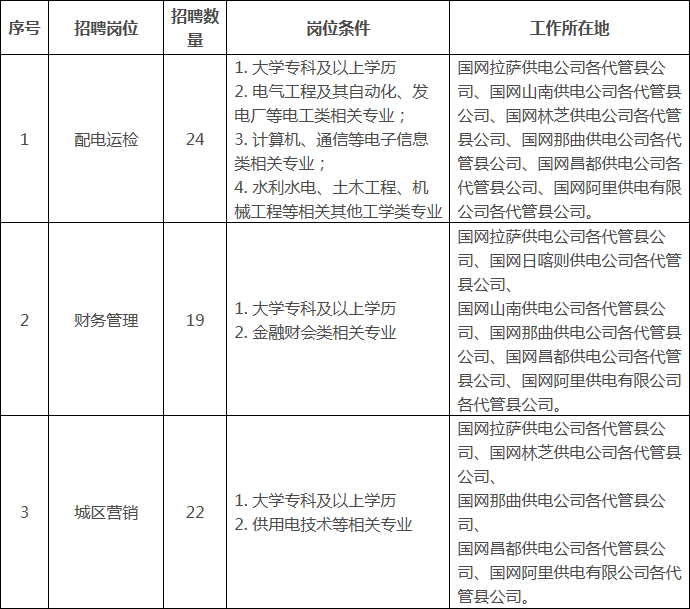 (三)代管縣公司:國網(wǎng)西藏電力代管縣級(jí)招聘單位27家,本次招聘人員身份為代管縣公司長期職工(正式員工)。