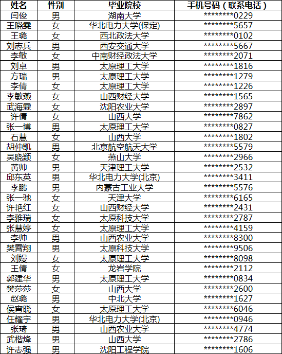 應(yīng)聘者或其他人員如對(duì)公示名單上的人員情況持有異議,均可在公示期間實(shí)名向我公司紀(jì)檢部門(mén)舉報(bào)或反映(地址:山西省太原市府東街71號(hào),郵編:030001,電子郵箱:[email protected],電話(huà):0351-4266498)。舉報(bào)及反映材料需簽署真實(shí)姓名并留下聯(lián)系地址、郵編和電話(huà)。