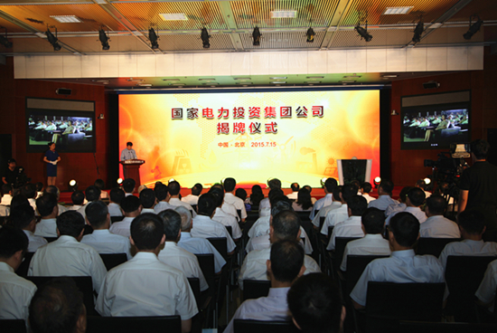 國(guó)家電投董事長(zhǎng)、黨組書記王炳華,原中電投集團(tuán)黨組書記、總經(jīng)理陸啟洲,國(guó)家電投總經(jīng)理、董事、黨組副書記孟振平共同為國(guó)家電投揭牌。王炳華發(fā)表致辭,孟振平宣讀《關(guān)于中國(guó)電力投資集團(tuán)公司與國(guó)家核電技術(shù)有限公司重組的通知》。