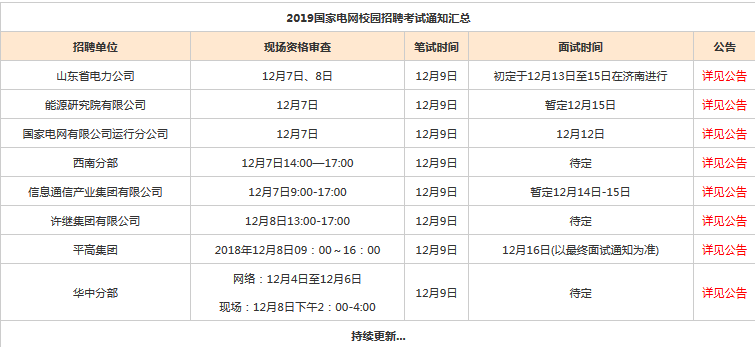 2019國家電網(wǎng)校園招聘將在12月9日進行筆試,12月7日進行現(xiàn)場資格審查。2019國家電網(wǎng)校園招聘考試通知匯總,希望可以幫助大家順利報考。