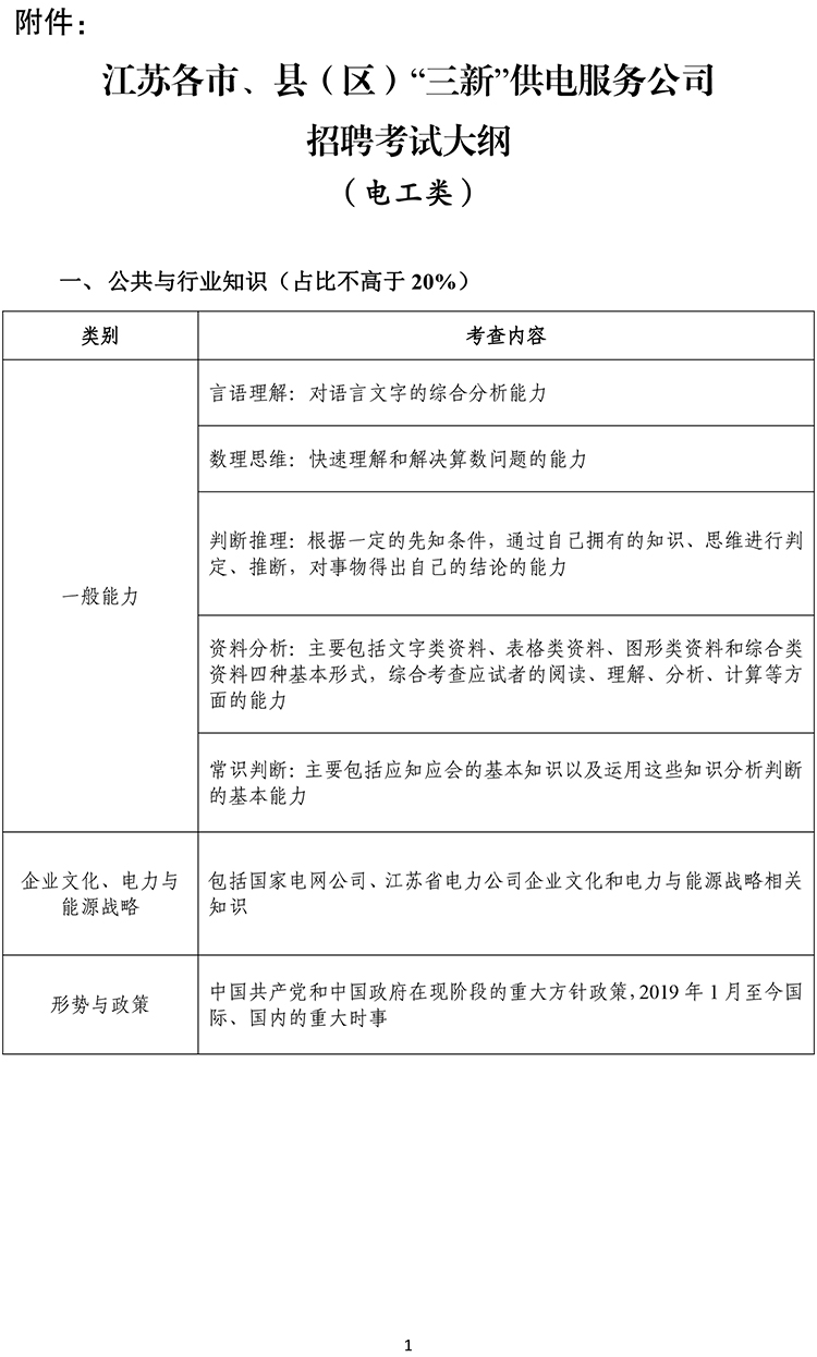 2020江蘇各市、縣(區(qū))“三新”供電服務(wù)公司招聘考試大綱(電工類)