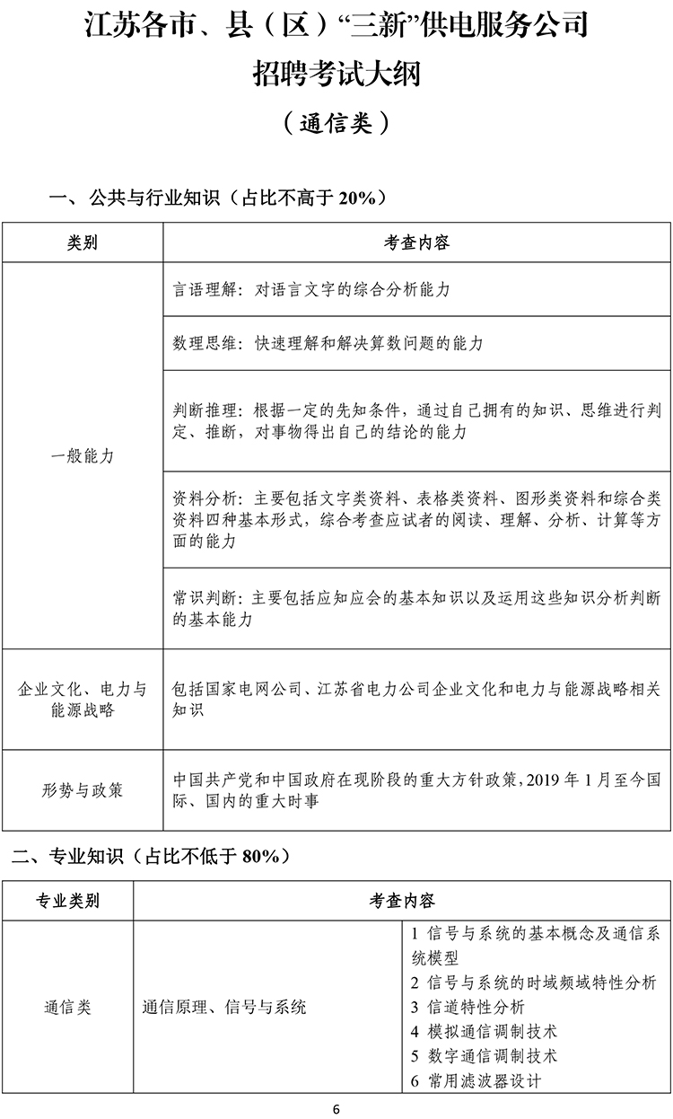 2020江蘇各市、縣(區(qū))“三新”供電服務公司招聘考試大綱(通信類)