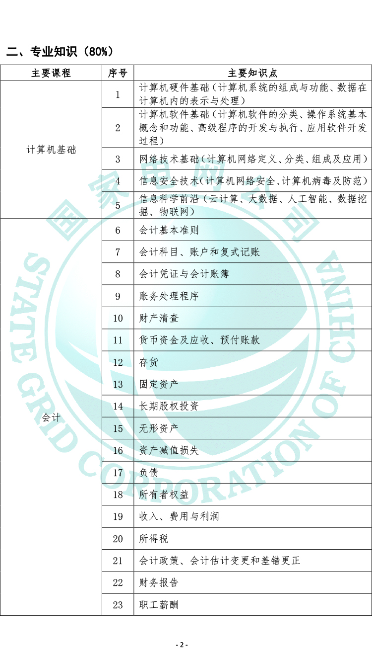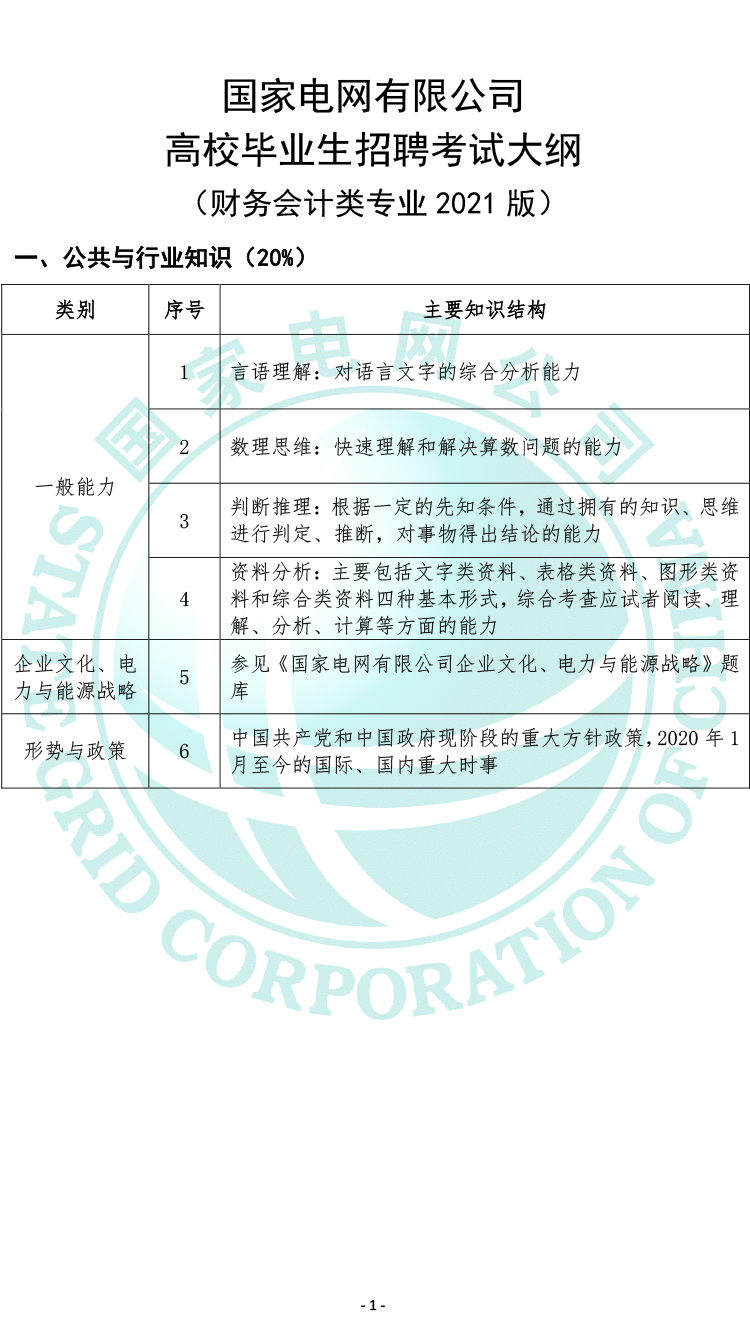 2021國家電網(wǎng)有限公司高校畢業(yè)生招聘考試大綱(財務(wù)會計類專業(yè))