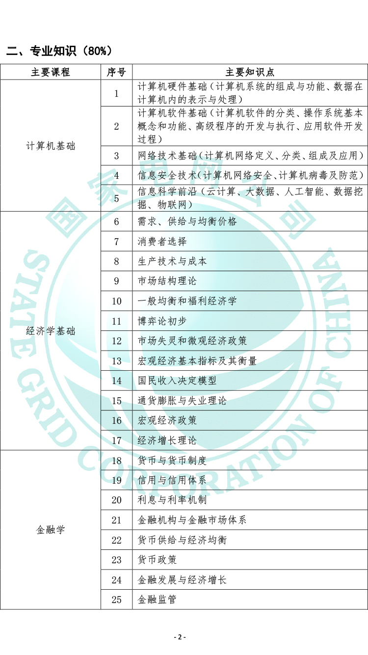 2021國(guó)家電網(wǎng)有限公司高校畢業(yè)生招聘考試大綱(金融類專業(yè))