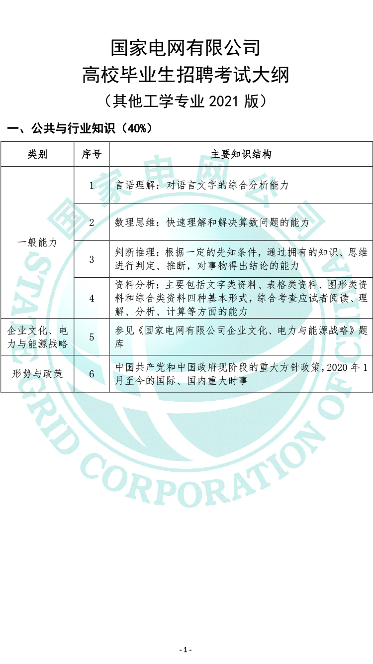 2021國家電網(wǎng)有限公司高校畢業(yè)生招聘考試大綱(其他工學(xué)專業(yè))