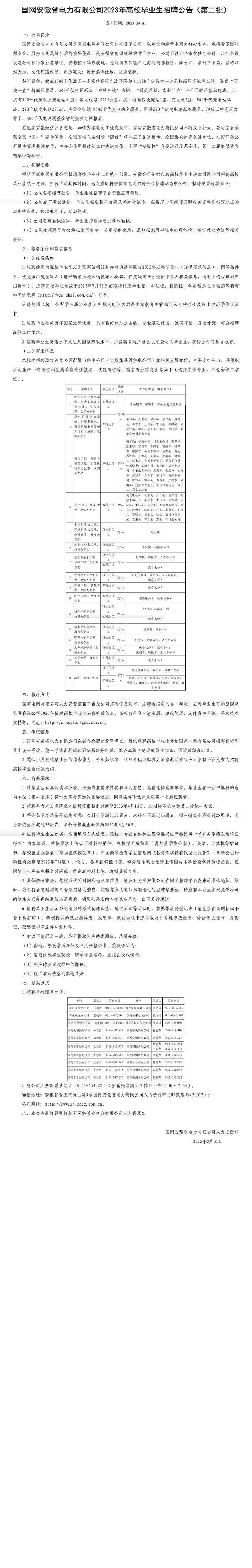 國(guó)網(wǎng)安徽省電力有限公司2023年招聘高校畢業(yè)生公告(第二批)