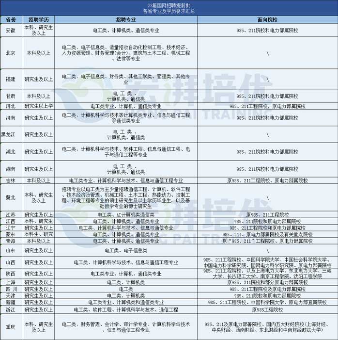 23屆國網(wǎng)提前批各省單位招聘要求匯總