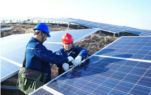 電網(wǎng)員工服務(wù)新能源項目并網(wǎng)。