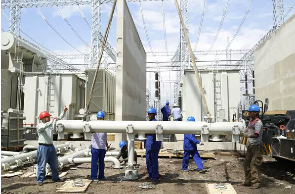 中國和埃塞俄比亞施工人員在500千伏HOLETA變電站施工。